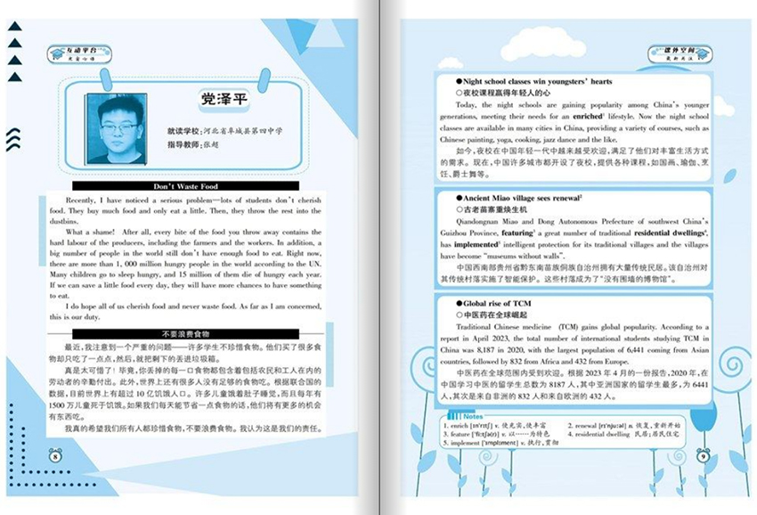 “翻译研究”栏目是杂志的一大特色。在当今全球化时代,翻译在跨文化交流中扮演着至关重要的角色。该栏目通过介绍翻译理论、分析翻译技巧、提供翻译实例等方式,培养读者的翻译能力,帮助他们更好地理解和运用英语进行跨文化交际。无论是文学作品的翻译赏析,还是日常实用文本的翻译实践,都旨在提高读者的语言综合运用能力和跨文化交际意识。例如,通过对经典文学作品的翻译对比分析,读者可以学习到不同翻译风格和策略的运用,感受翻译的魅力和挑战;通过对实用文本的翻译练习,读者能够掌握翻译的基本原则和技巧,提高翻译的准确性和流畅性,为今后的英语学习和实际应用打下坚实的基础。